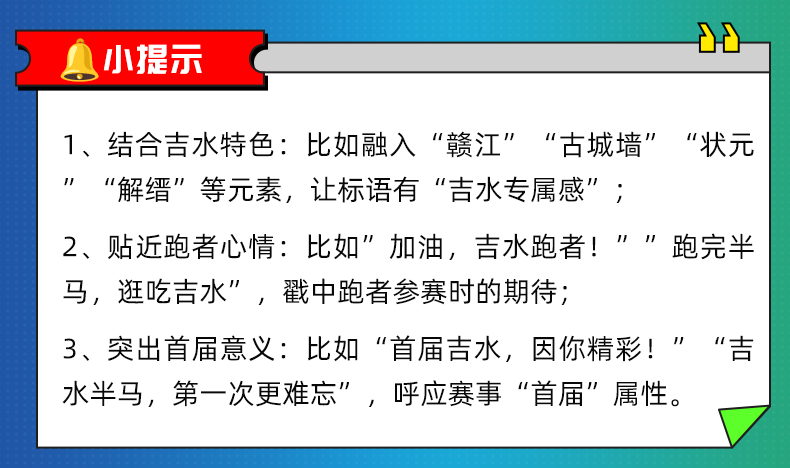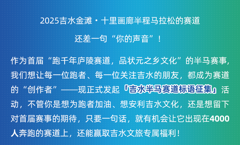 吉水半马喊你写标语!入选作品将亮相赛道,还能赢品牌大礼包!